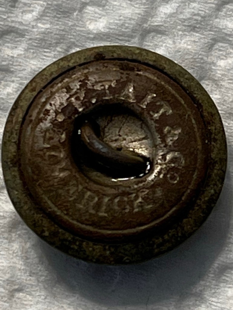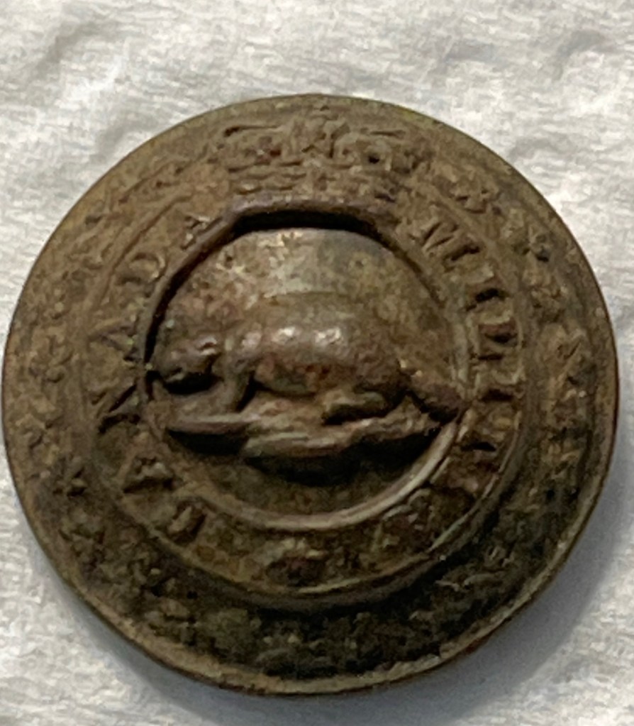 With trembling hands, I carefully cleaned it off it to reveal our suspicions were correct. An antique 1800’s military button A mid Victorian era militia cuff button. Research revealed that this particular button was made in Limerick Ireland. A company by the name of Peter Tait & CO wielded the button and sold to a family member in 1870 when the company changed its name. And since Canada was only official in 1868 and the business changed names in 1870 this dated this particular button between the years of 1868 to 1870 considering the button had the word Canada written on it.